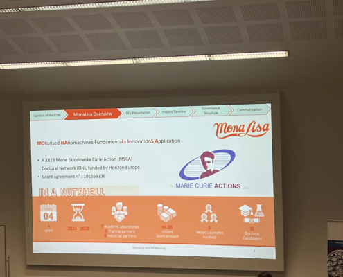 On the first day, the doctoral students attended lectures by Alberto Moscatelli (Nature) on Publishing & Open science, Tobias Bauer (AchiverLab) on First steps as a DC, project management in PhD education, Emilie Moulin (CNRS) on the Training Aspects of MonaLisa, Nicolas Giuseppone (CNRS) on Research Integrity and scientific misconducts, and finally Nelly Gautier (CNRS) on the MSCA green charter.